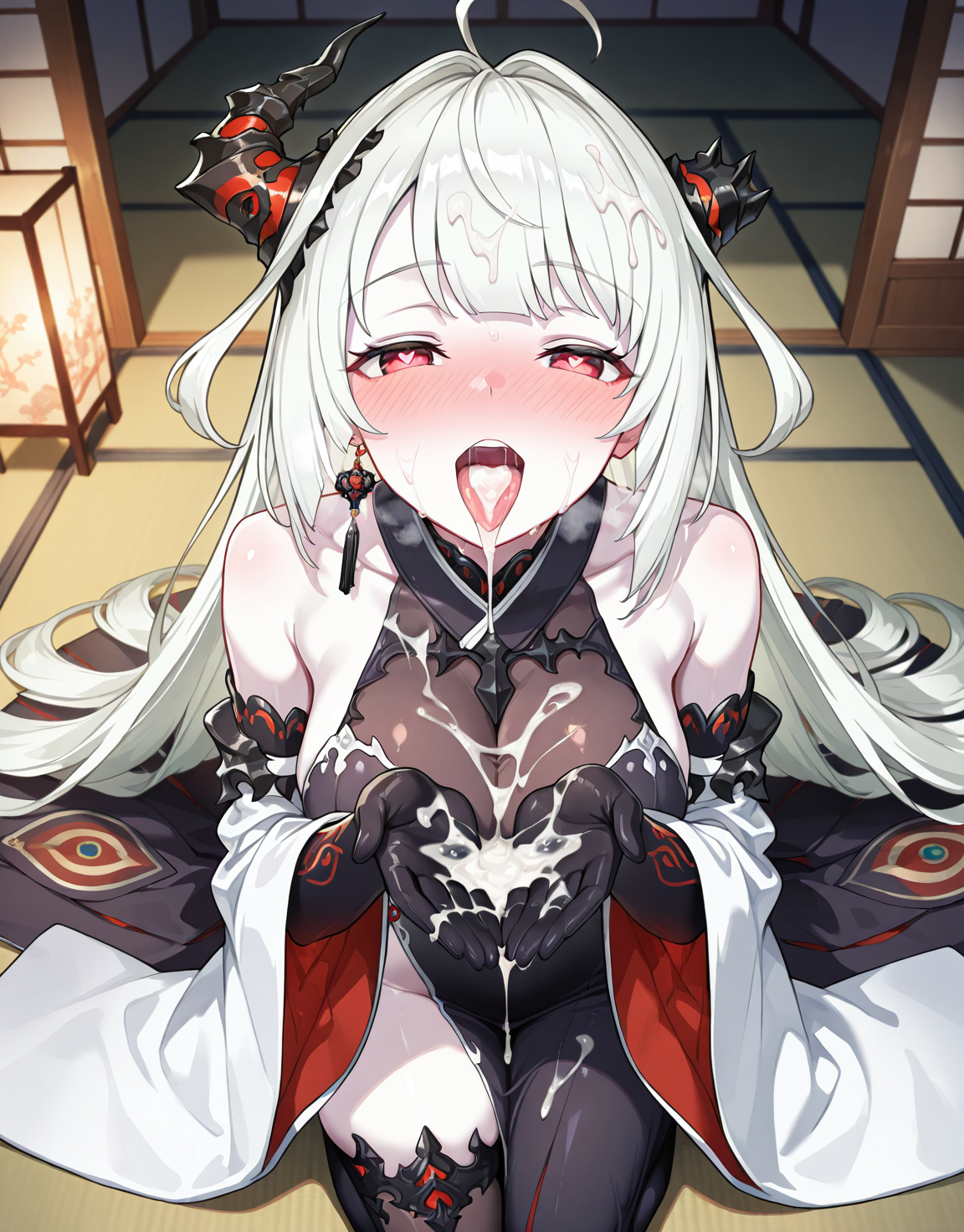 "Mika_AyaRabu, long hair, single earring, asymmetrical horns,"