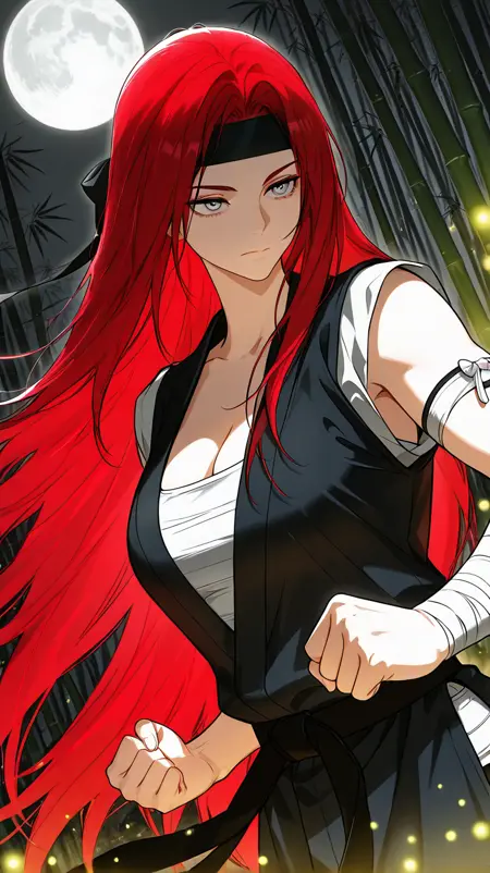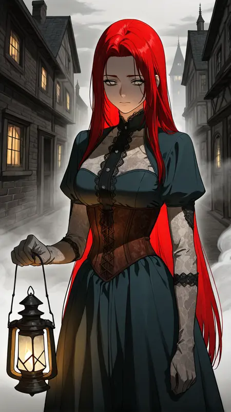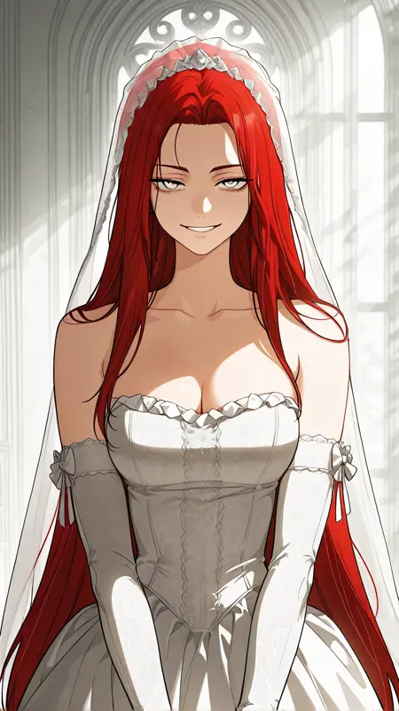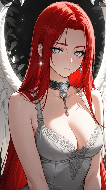 1girl, solo, il_rinoa, grey eyes, red hair, straight hair very long hair, medium breasts,