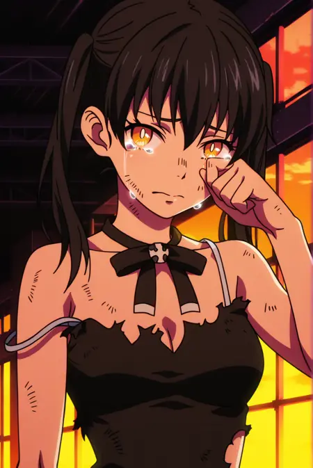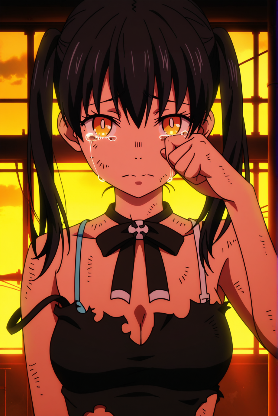 <lora:FireForceTamakiXL-v1-07:0.7>, ChopioTamaki, 黑发, 长发, 双马尾, 橙色眼睛, 白色瞳孔, 直视观众,