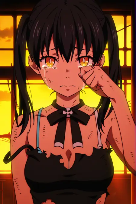 <lora:FireForceTamakiXL-v1-07:0.7>, ChopioTamaki, 黒髪, 長髪, ツインテール, オレンジ色の目, 白い瞳, 視線は観察者へ,