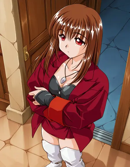 由于学习图像较少,若不指定姿势,角色常会固定为交叉双臂;若使用“white thigh boots”提示,即使未指定“from above”,图像也会被固定为从上方视角。请注意。