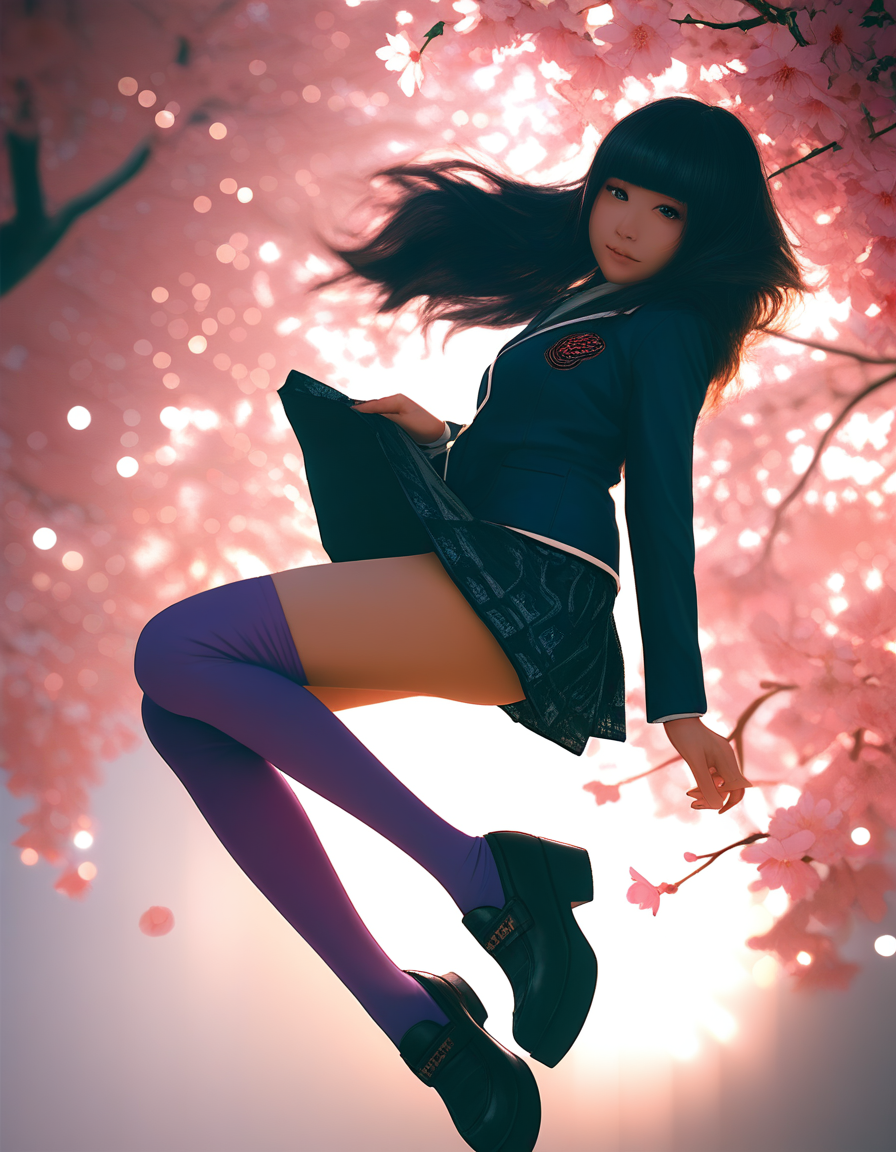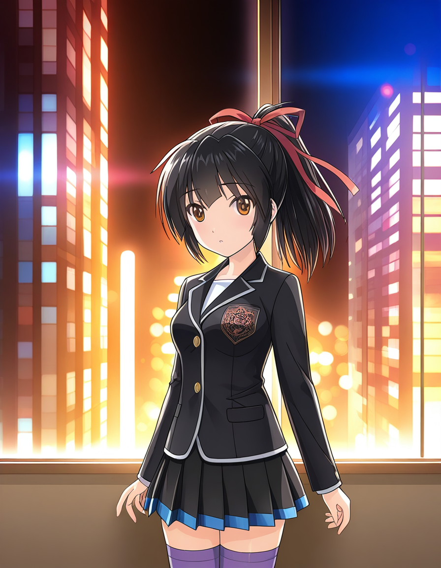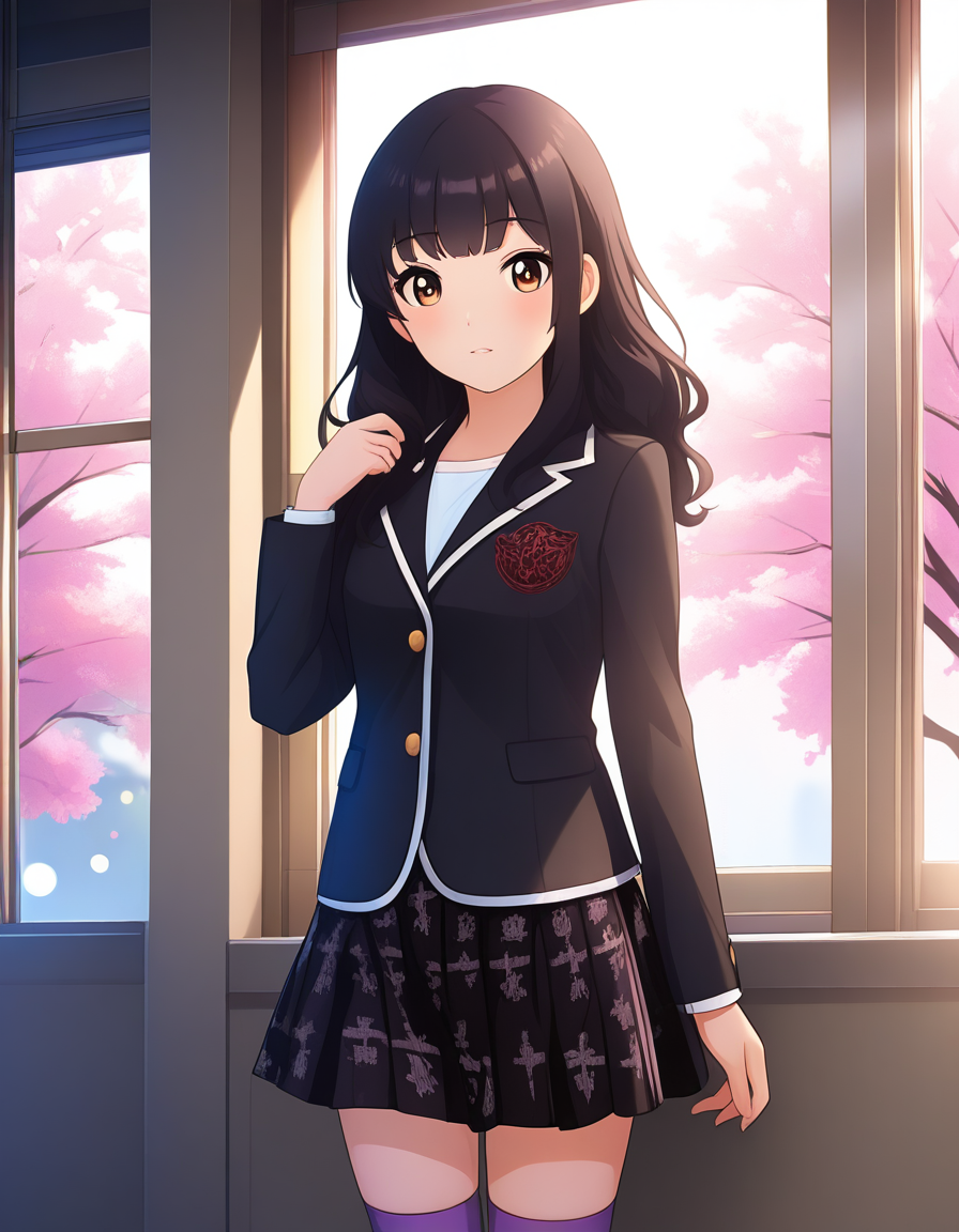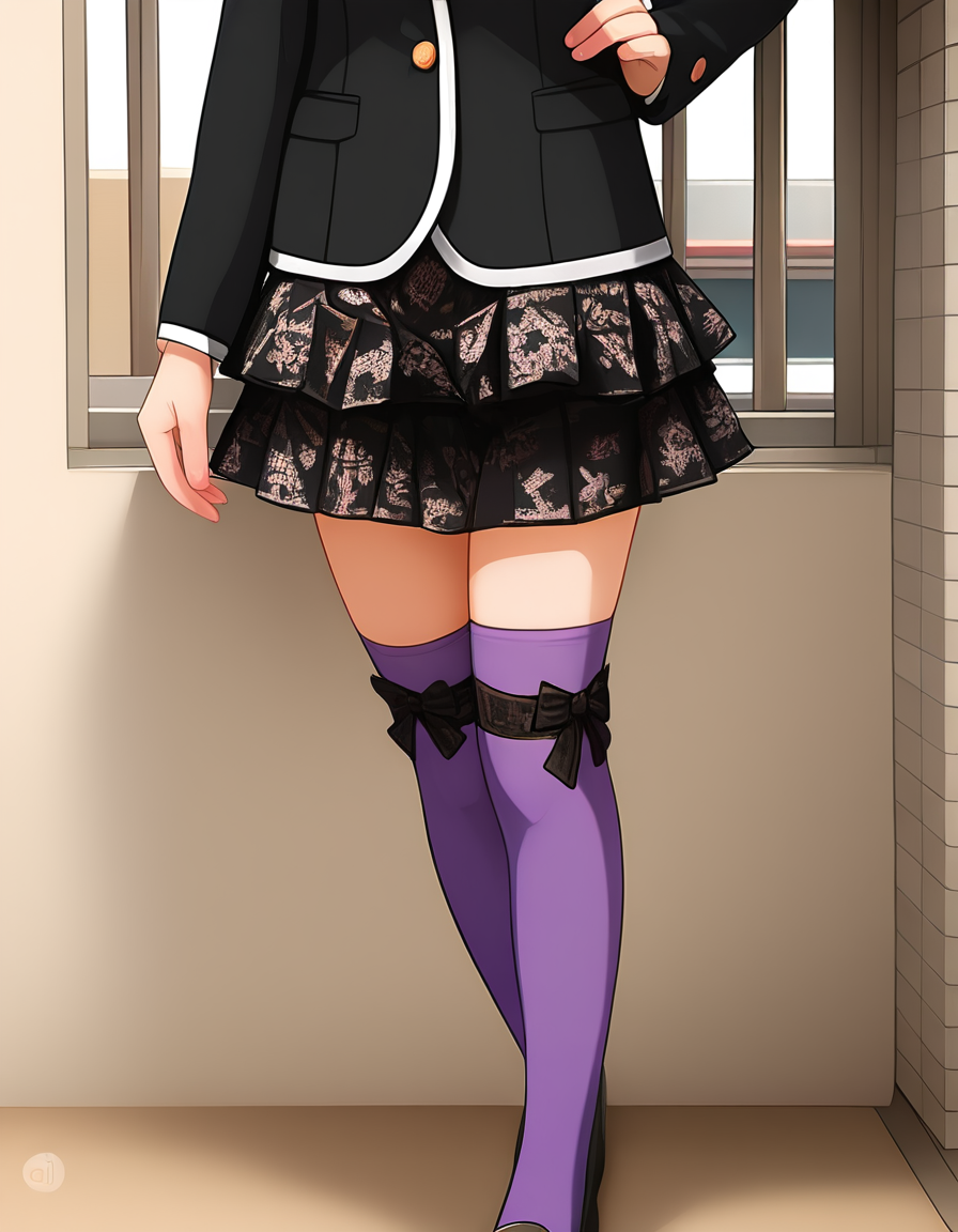 jacket,long sleeves,school uniform,black jacket,blazer,skirt,black skirt,thighhighs,purple thighhighs,shoes