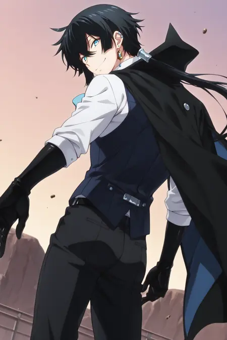 vanitas, vanitas_vnc, 黑发, 蓝眼, 发丝垂于眼间, 低马尾, 单耳环, 耳钉