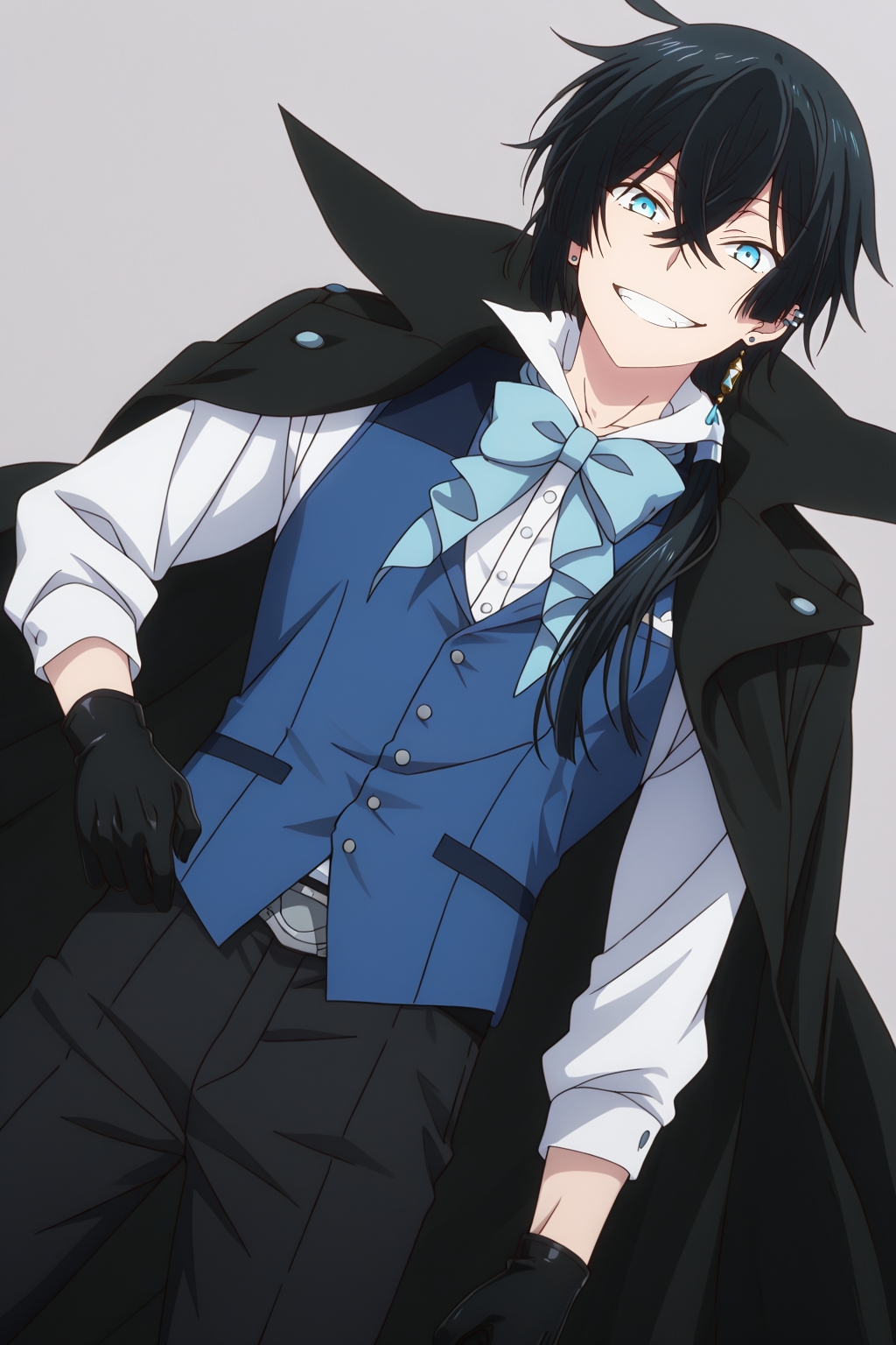 官方替代服装, 青色领结, 黑色长裤, 蓝色背心, 黑色手套, 肘部手套, 白色立领衬衫, 黑色斗篷, 白色靴子, 黑色鞋子