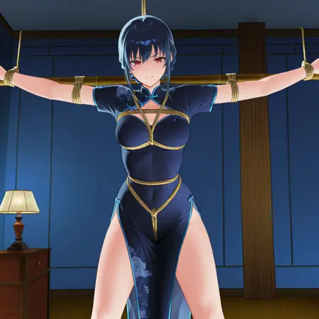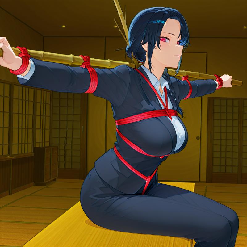 BambooYoke, shibari, rope, bound, wariza, from behind, from side, from above