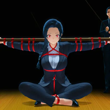 BambooYoke, shibari, red rope, black bamboo stick, bound, suspension, midair,suspension rope
