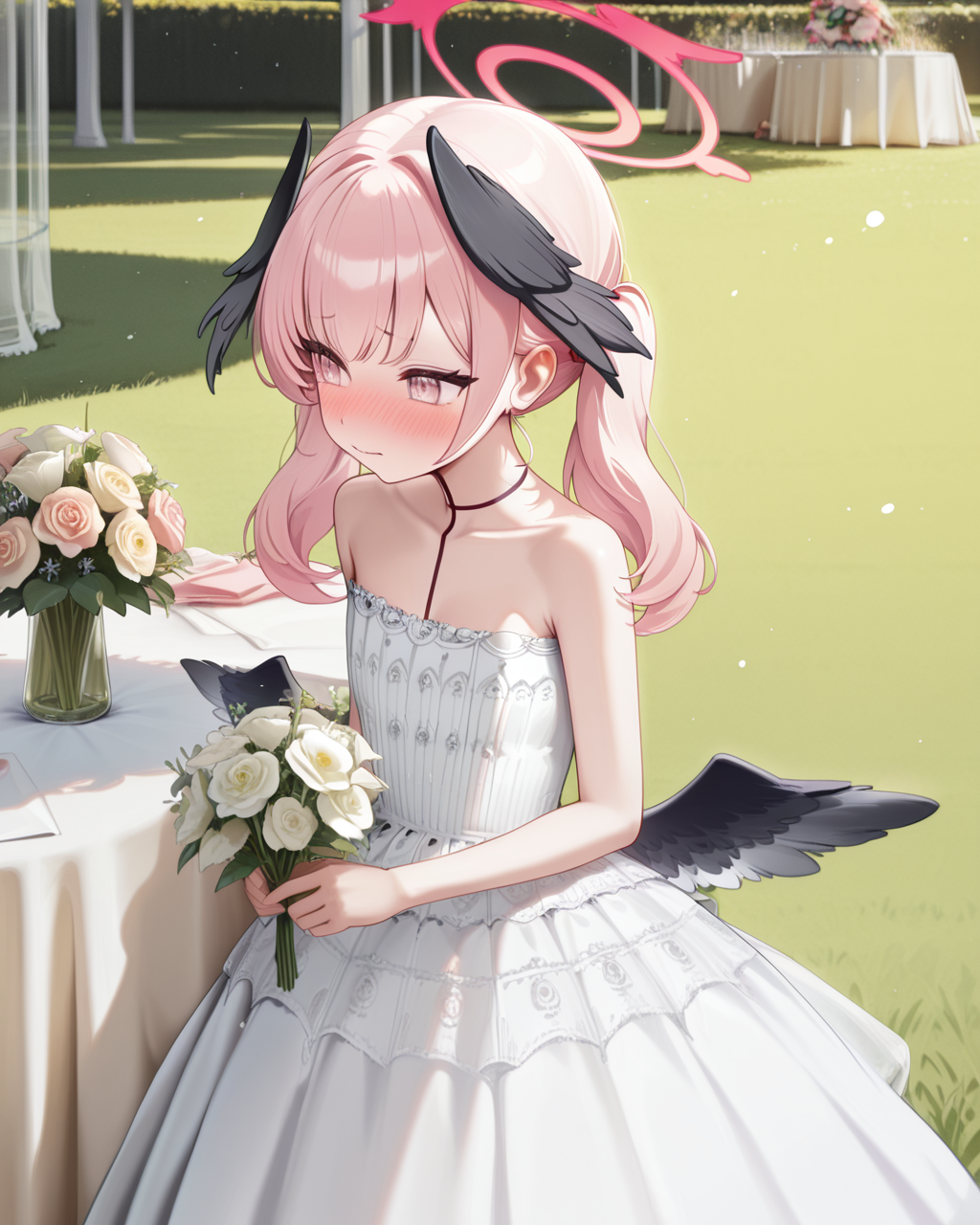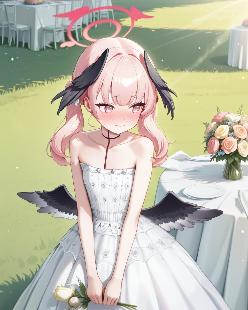 HUNS,wedding dress, white dress,bare shoulders,strapless,