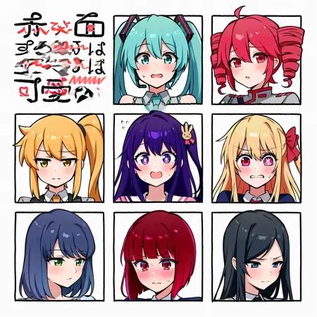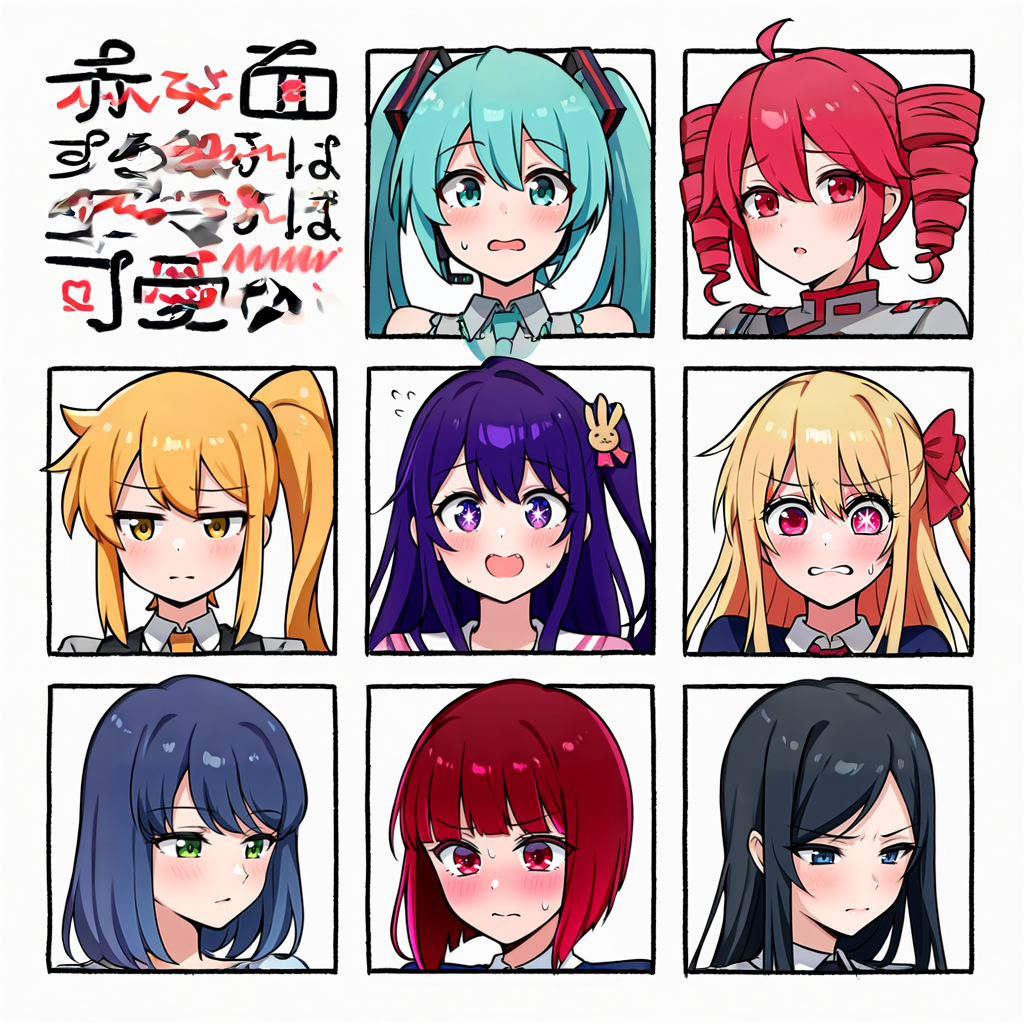 触发词:template,blush,upper body,{8个角色及其性别、特征,MF不要把这一整行放进你的提示词,自行调整!!!!! :D}
