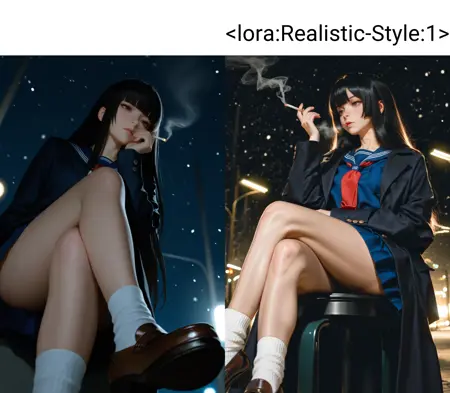 私は、noob_eps 110% の欠点を補うためにリアルスタイルのLoRAを作成しようとしましたが、失敗しました——今回は結果が物足りませんでした。体の形状までは完全に再構築できず、テクスチャの強化だけにとどまりました。得られるのは、不自然に大きなアニメ風の目と誇張された「ワイフ」的表情を持った写実的なキャラクターで、その表情は不気味で、ほぼ超現実的な領域に達しています。それでも、私はこのLoRAをリリースします。実用のためではなく、単に人々が私の説明を読まずに無批判に使って、自分の生成物に驚き、嫌悪する様子——特に、その貴重な驚愕した表情を見るためです。これを意図的な悪戯と呼んでください。