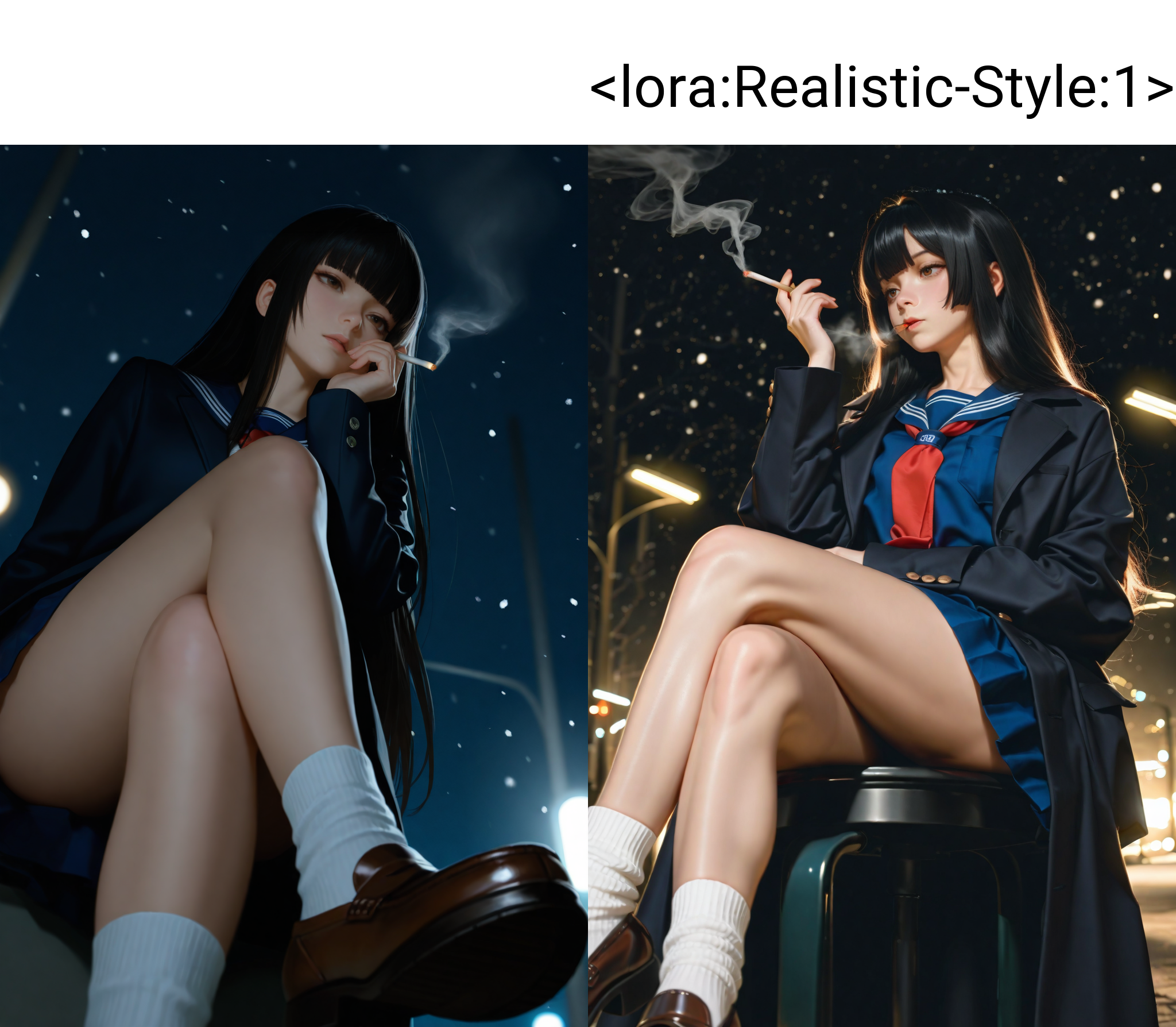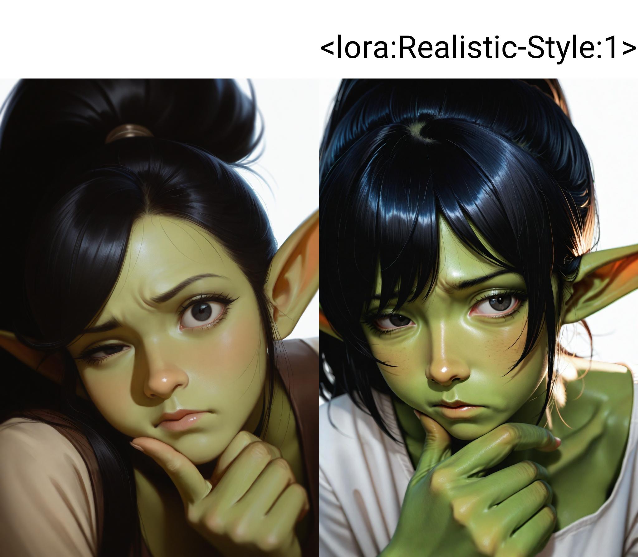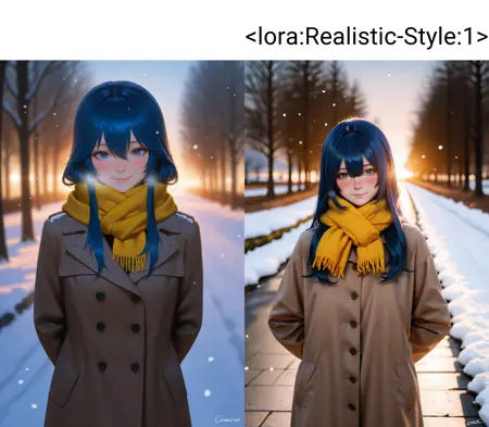 나는 _noob_eps 110%_의 단점을 보완하기 위해 리얼리스틱 스타일의 LoRA를 만들어보려 했지만 실패했다—이번에는 결과가 별로였다. 몸의 형태를 완전히 재구성하지 못하고 텍스처만 향상시켰을 뿐이다. 얻어진 결과는 사진처럼 사실적인 캐릭터이지만, 비자연적으로 큰 애니메이션 눈과 과장된 '와후' 표현으로, 기묘하고 거의 초현실적인 영역으로 치달았다. 그럼에도 나는 이 LoRA를 발표한다. 실용성을 위한 것이 아니라, 사람들이 내 설명을 읽지 않고 무비판적으로 사용한 뒤, 자신이 만든 결과에 놀라 뒤돌아서는 모습—특히 그들의 귀중한 놀란 표정을 보고 싶어서이다. 이를 의도적인 장난이라 부르자.