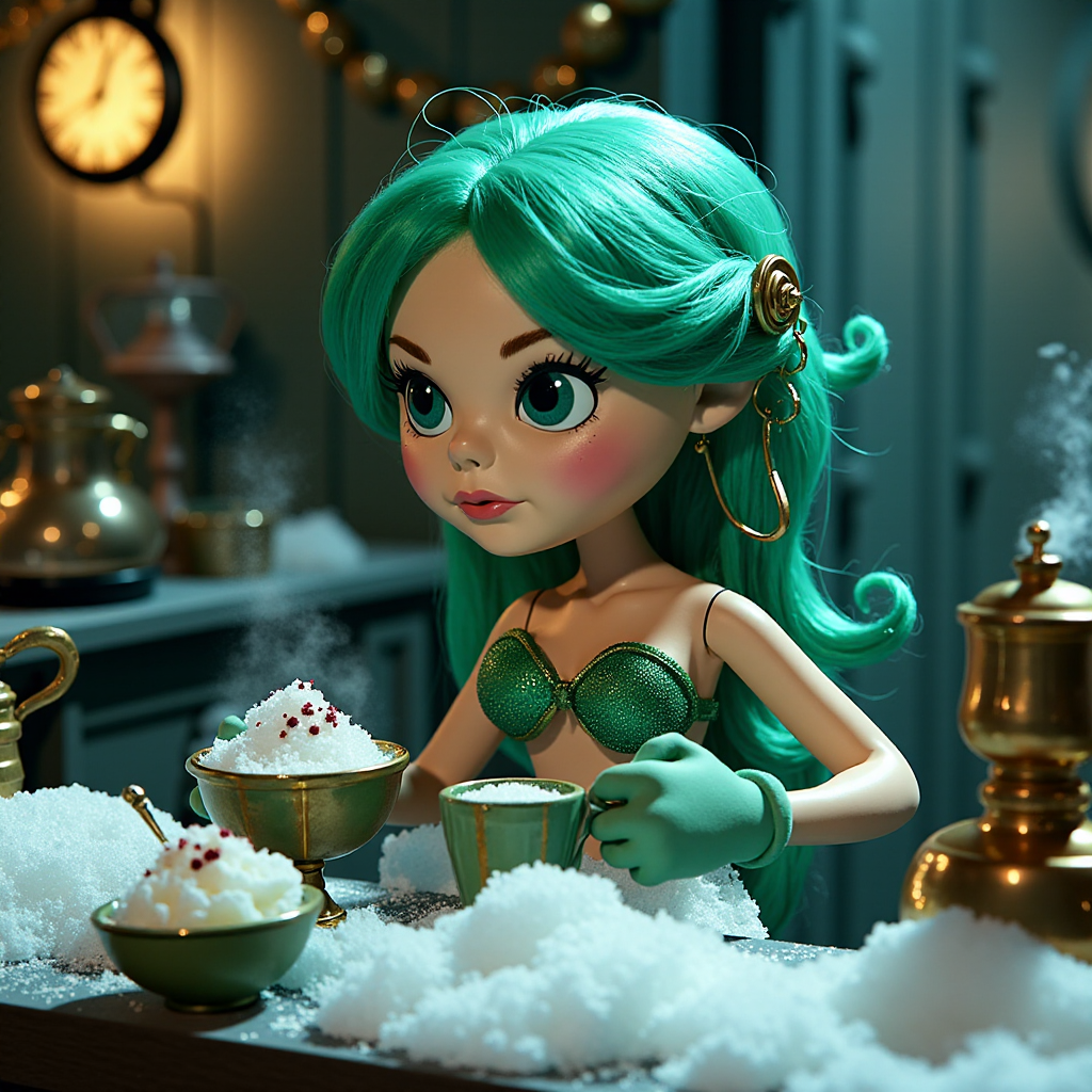r4nk1n8455 stop motion animation— クトゥルフ風の存在が、震えながら賛美歌を歌う合唱団を指揮する。触手には氷のルーンで刻まれた楽譜を握り、角のついたエッグノッグの樽が不気味に沸騰している。「機械仕掛けのクランプス」