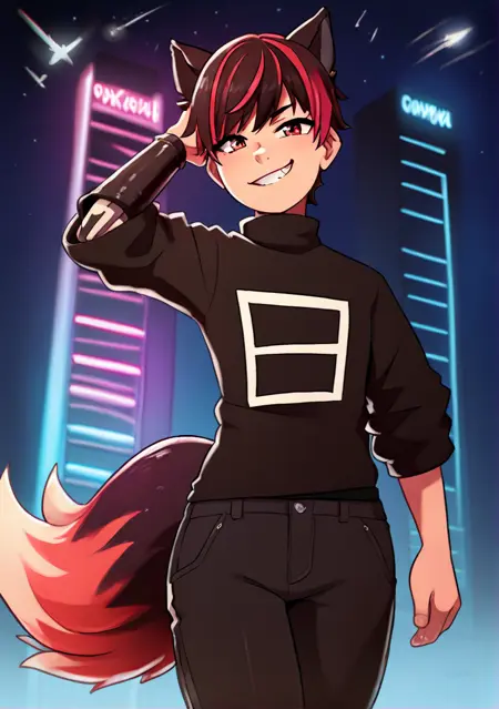 He doesn't have a tail, so add "tail" to the negative prompt if ya need to.