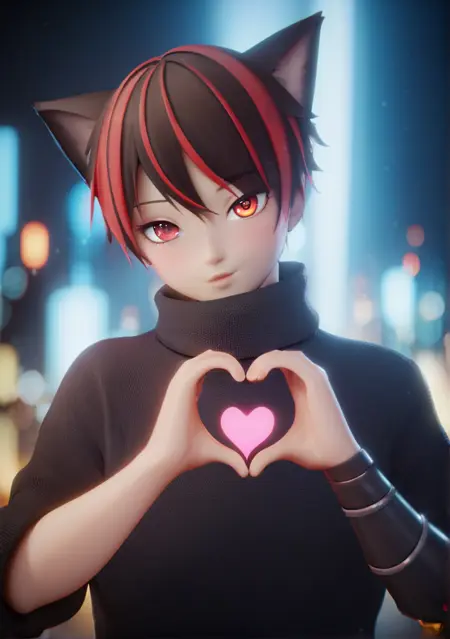 I had this dude in my mind for a long time so I made a 3D model of him, rendered him in Blender a few times and then trained a robot to generate him. No, he's not the human version of shadow the hedgehog or something. He is Arnas Atakiyo's emo boyfriend tho!...