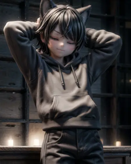 I had this dude in my mind for a long time so I made a 3D model of him, rendered him in Blender a few times and then trained a robot to generate him. No, he's not the human version of shadow the hedgehog or something. He is Arnas Atakiyo's emo boyfriend tho!...
