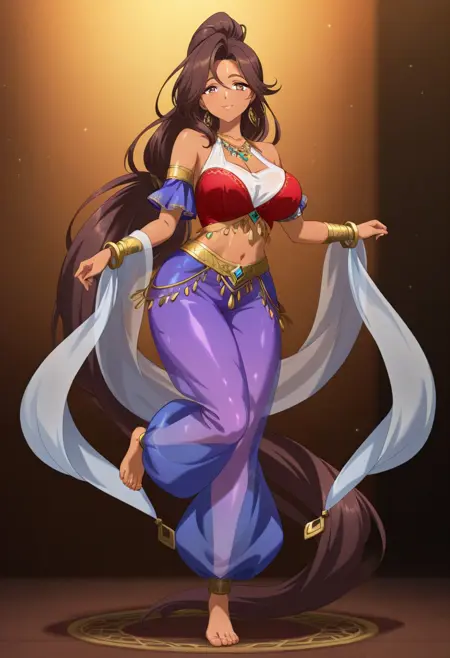 该模型旨在重现Gacha游戏《兰格里斯斯移动版》的视觉风格。我将这种艺术风格描述为试图将漆原智志的设计美学(肩甲、盔甲、胸部尺寸等)与更现代的艺术技法相结合。