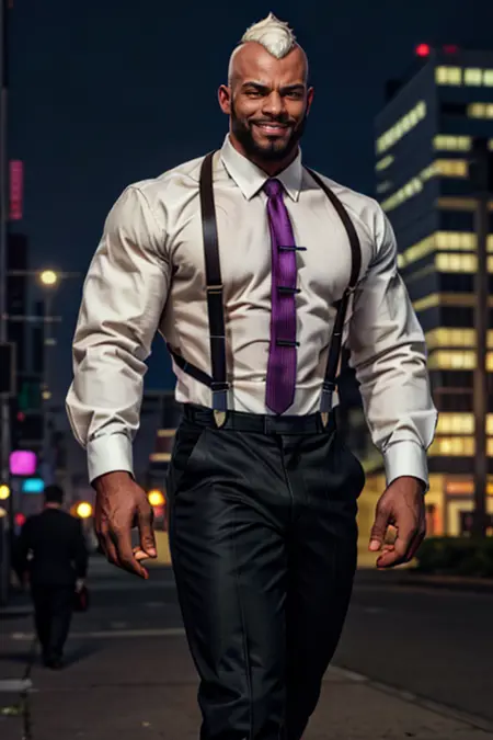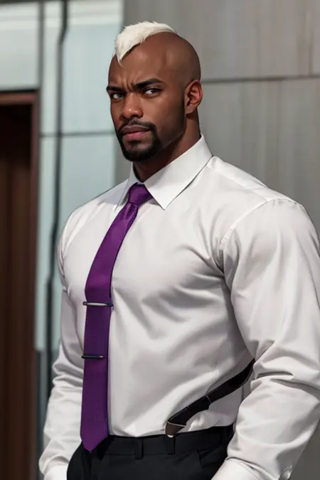 또한: 모하awk 헤어스타일, 팬티클립, 넥타이, 셔츠, 바지, 벨트, 장갑, 수염