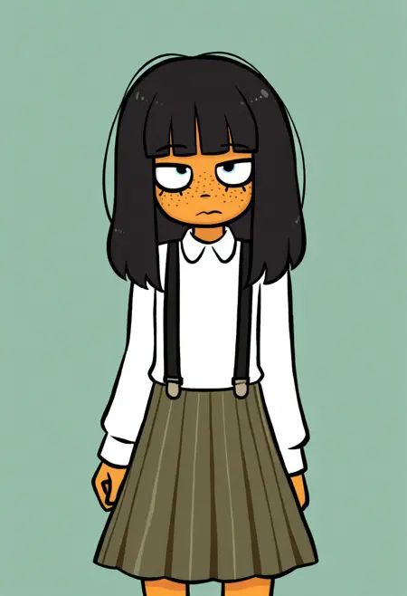 기타 유용한 트리거: 만화, 평평한 색상, 필름 그레인, 두꺼운 윤곽선, 수축된 동공, 얼굴 무늬(필요 시 클레오용)