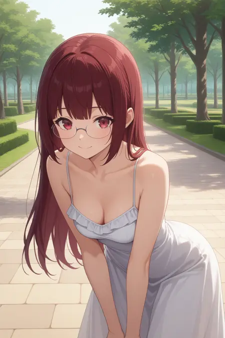 aaalicia, 빨간 눈, 안경, 빨간 머리, alicias2, 디어ndl, 노란 셔츠, 프릴 셔츠, 노란 소매, 푹신한 긴 소매, 갈색 코르셋, 빨간 치마, 긴 치마,