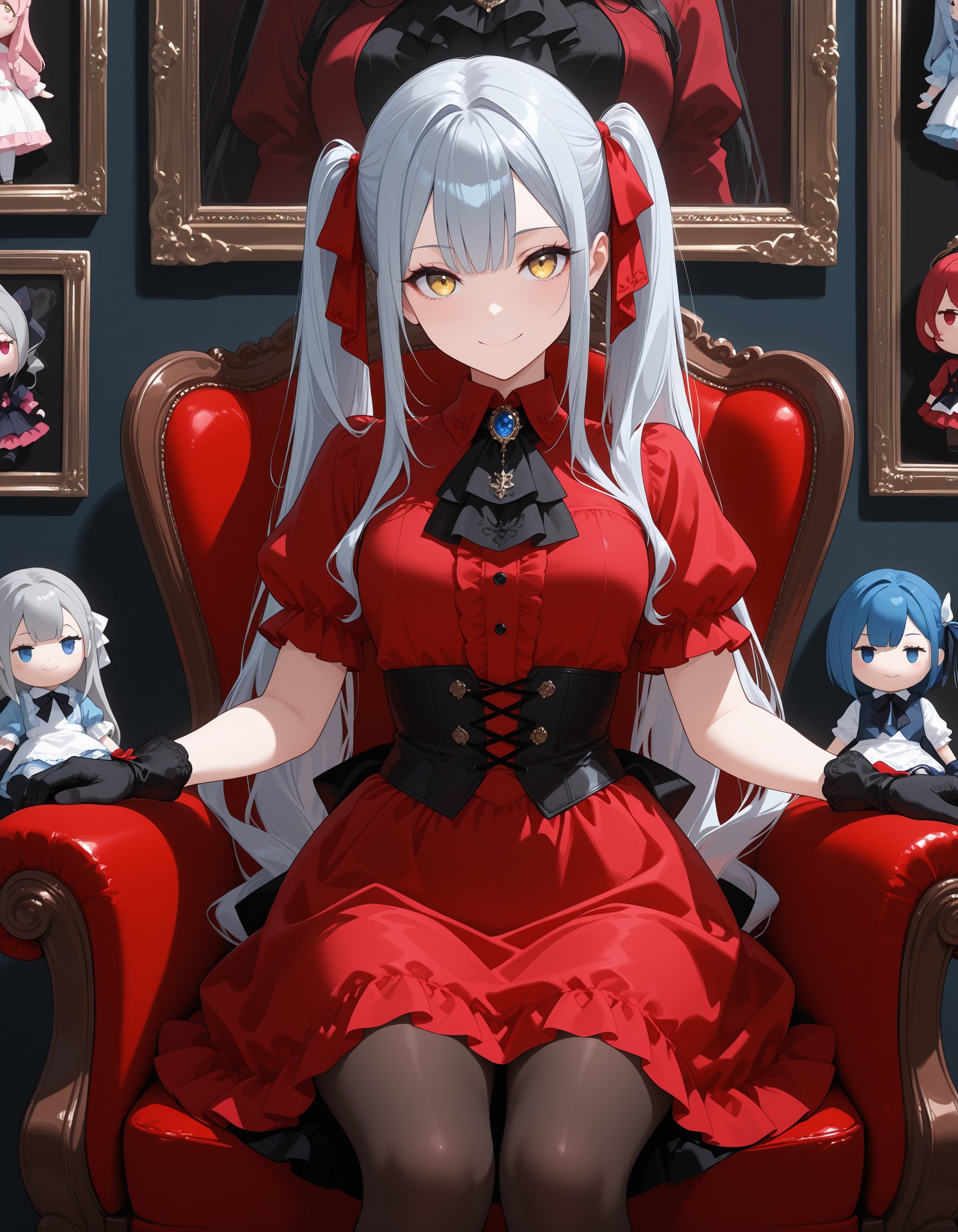 sakiko, long hair, yellow eyes, grey hair, blue hair