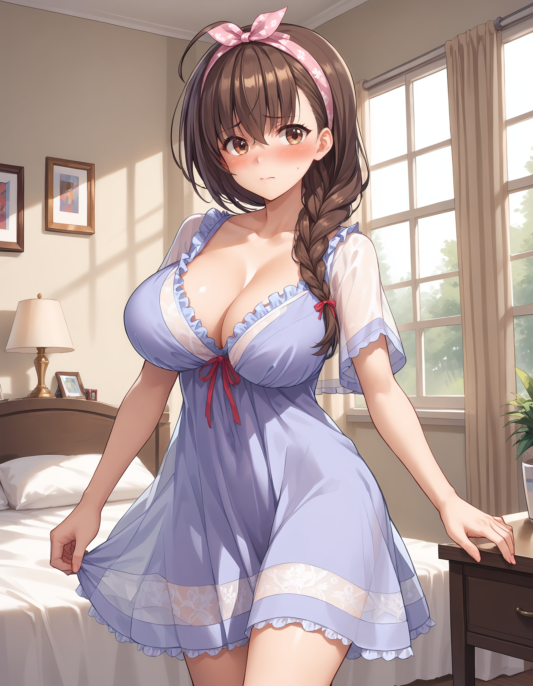 outfit04,连衣裙,紫色连衣裙,荷叶边连衣裙,丝带装饰的领口连衣裙,睡衣,透明,短袖,露胸,锁骨,