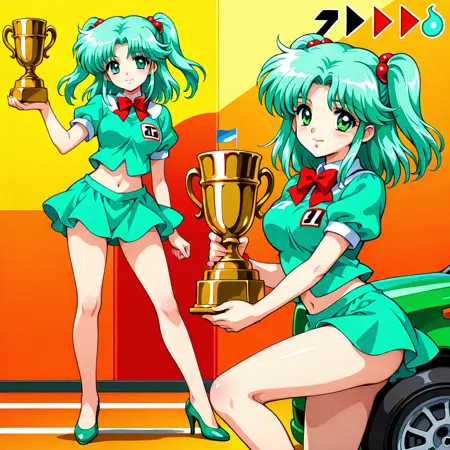 Due to the relatively complex designs of each character, it's recommended to generate them at high strength first, then refine the result using ADetailer with tags like 1980s (style) and anime coloring (apply twice for best results).
