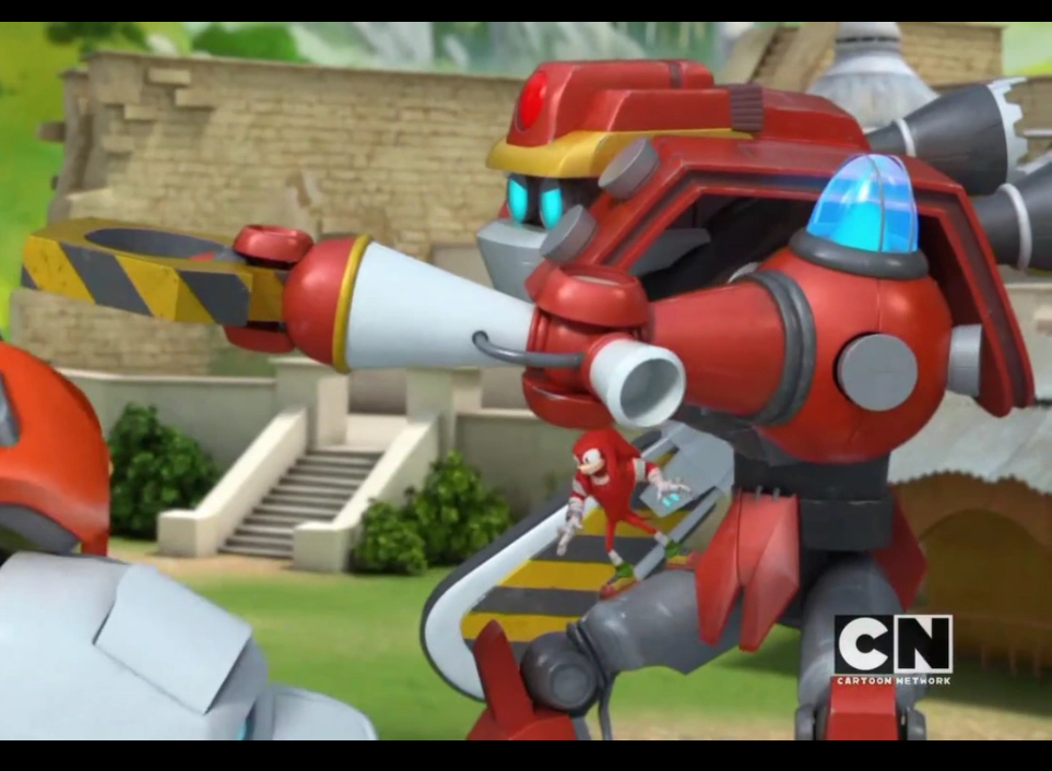『ソニックブーム』TVアニメに登場するエッグマン博士の巨大戦闘ロボット。最初の2枚のショーケース写真のみAI生成です。残りはアニメからの画像であり、キャラクターの外見を把握するための参考として掲載しています。