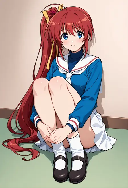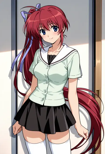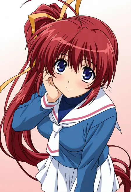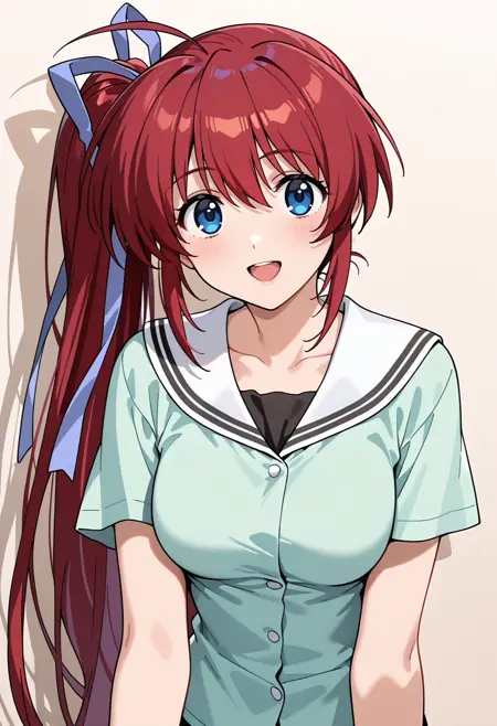 takase_mizuki, mizuki_school, 红发, 超长发, 天线发, 侧边马尾, 蓝眼,