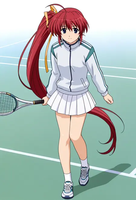 takase_mizuki, mizuki_tennis1, 红发, 超长发, 天线发, 侧边马尾, 蓝眼,