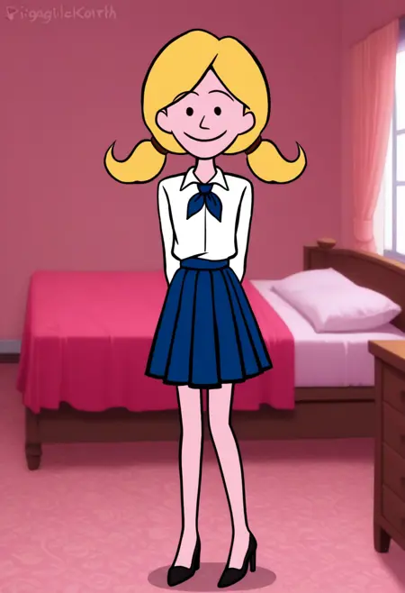- MeanGirl_InstantKarma_Storybooth, 金发, 双马尾, 长发, 点状眼睛