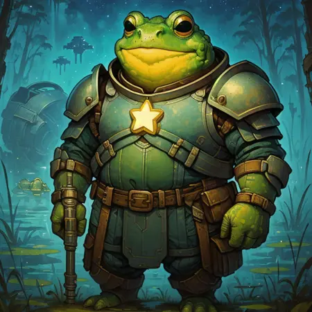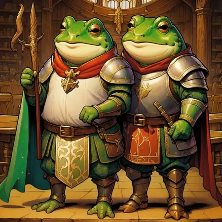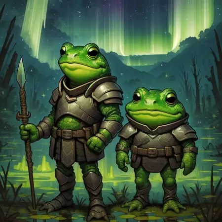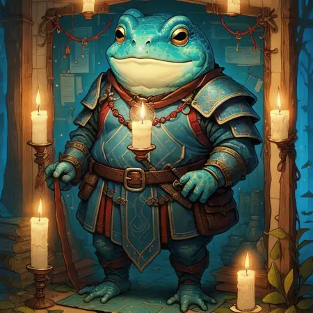 I loved the idea of playing a fat frog in D&D and overlayed that onto Grung. I was having trouble getting character portraits to come out consistently, so I made a LORA to attempt that. The key token is "Grung" and "X skinned" (green skinned, etc.). For an example prompt, try "Grung, green skinned, squat and wide, standing in front of a corkboard with red string, candlelight illumination, wearing chainmail, a swampy detective office with old tomes, maps and scrolls"