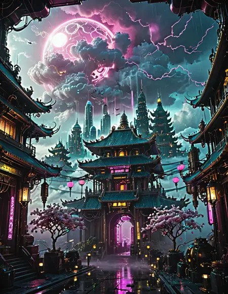 A part of the dataset from : /model/1409260/city-worlds-cyberpunk-temples but using this lora trigger (cwmst)