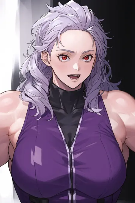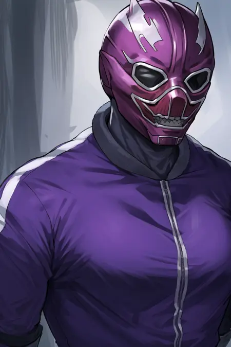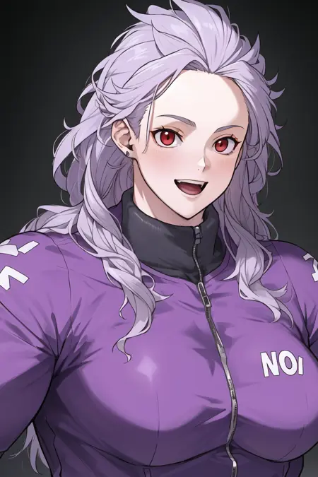 더 나은 외형을 원하시면 "긴 머리, 근육질, 재킷, 보라색 작업복"을 추가하세요.