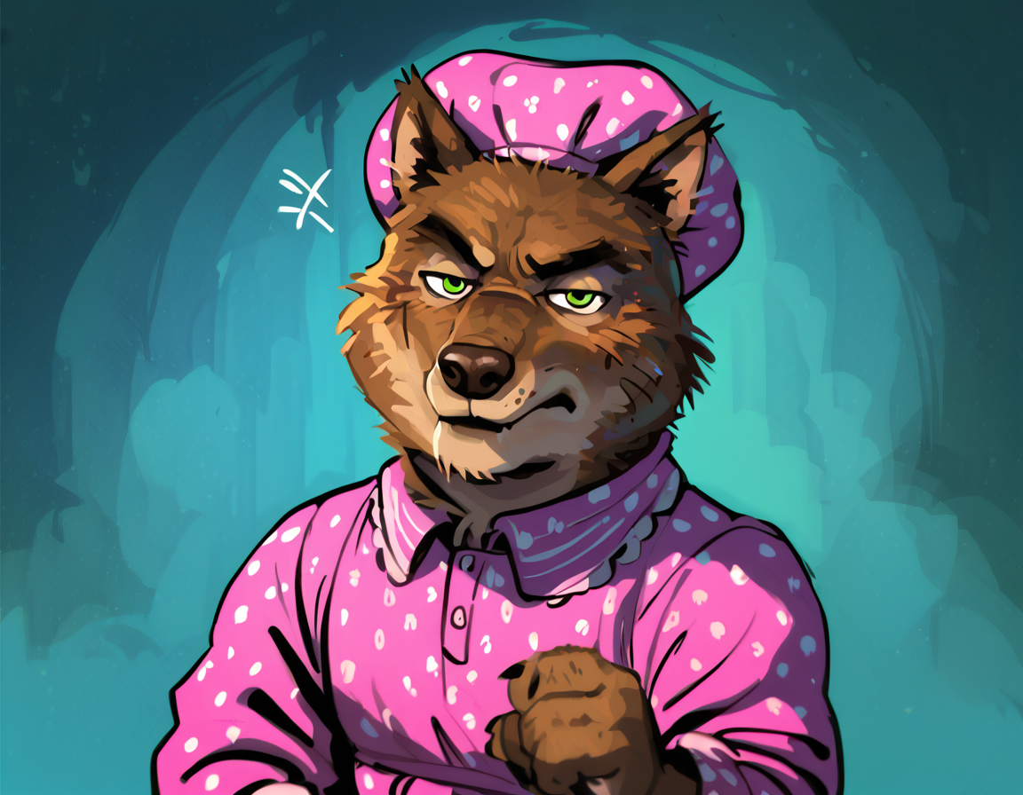 注意:本模型的数据集包含 Wolfie 穿着不同服饰和毛发的图像,用于生成其多种变体。