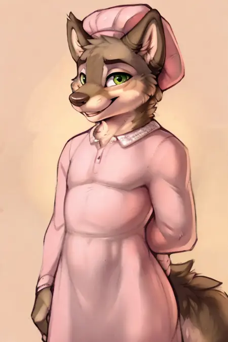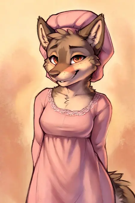 若要排除 Wolfie 的睡衣,请在负面提示中输入:((nightgown, clothing))