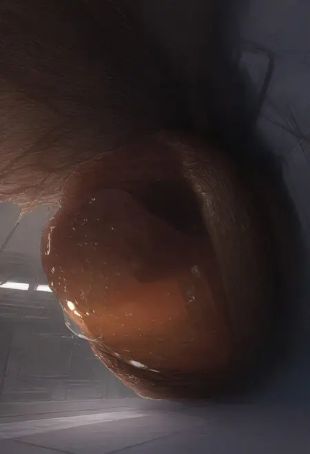 infectedw, slimy translucent cocoon, membrane, veins bulging, organic texture, glistening surface, cinematic perspective,cocoon interior