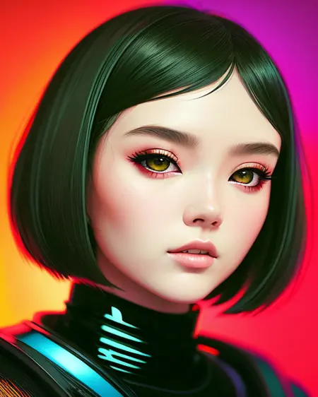 通常のタグ例:Unreal Engine 5, Octane render, リミテッドパレットフラットカラー, Hyperrealism, Photorealism なども効果的。