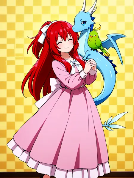 carol lilia, 풀헤어, 흰색 파자마, 분홍 리본 (성능이 잘 안 될 수 있음, 데이터 부족)