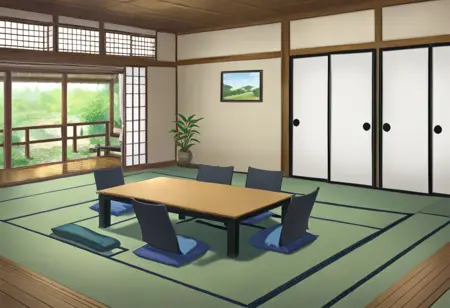 tatami,scenery, indoors, plant, vase, window, curtains, cushion, flower, sliding doors, potted plant,tatami room,pillow,shouji,light rays