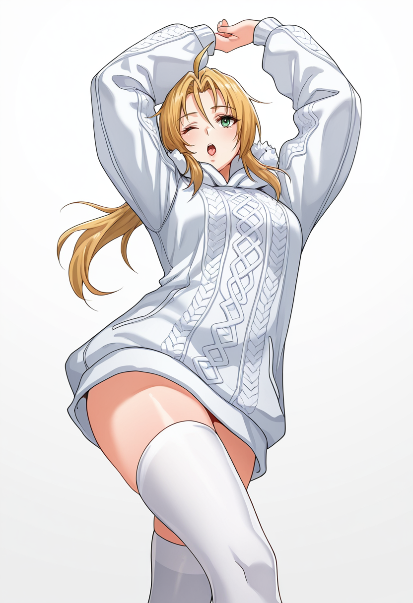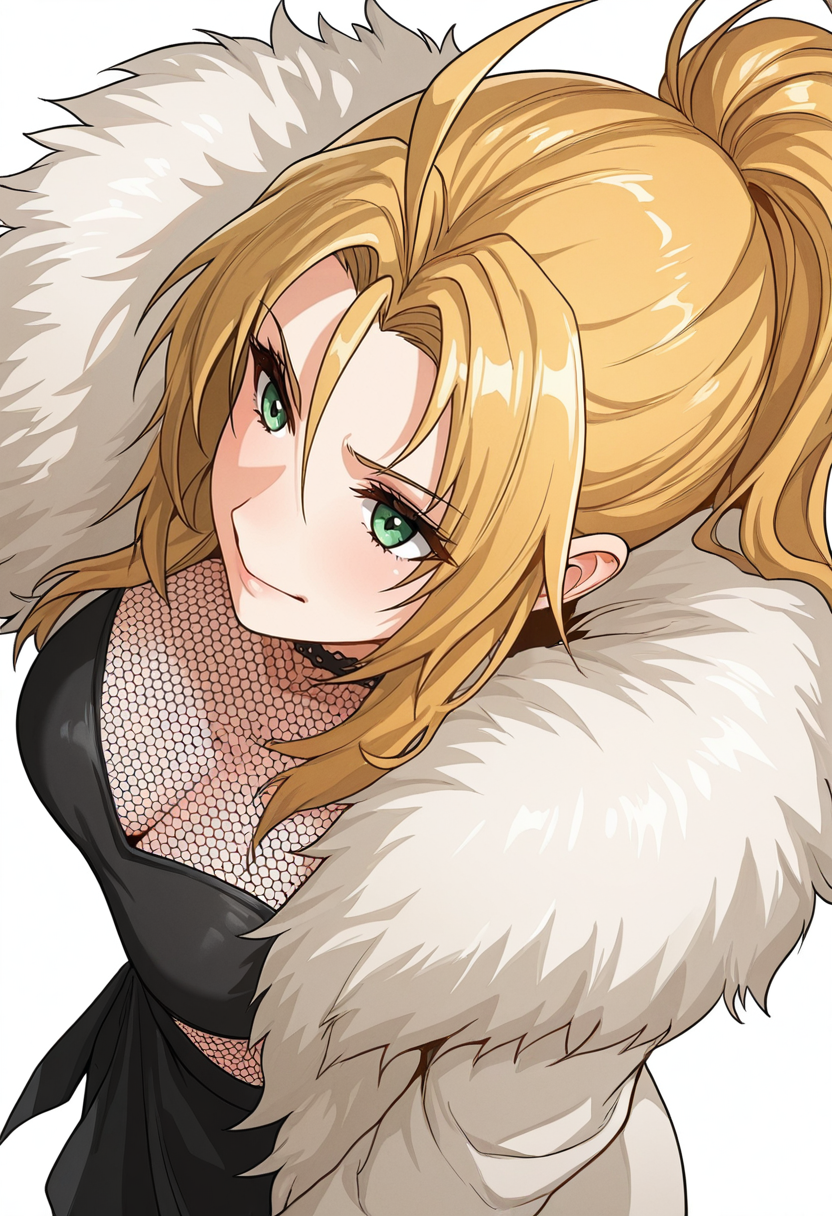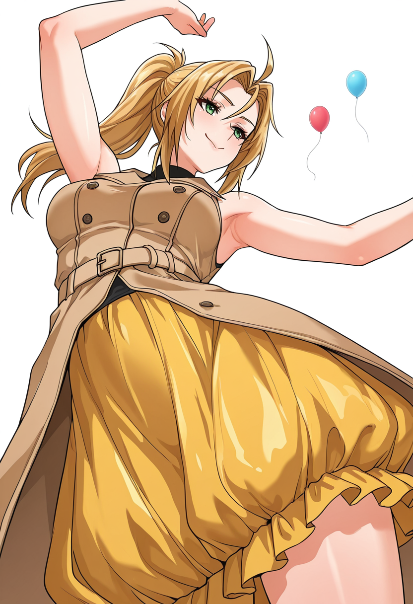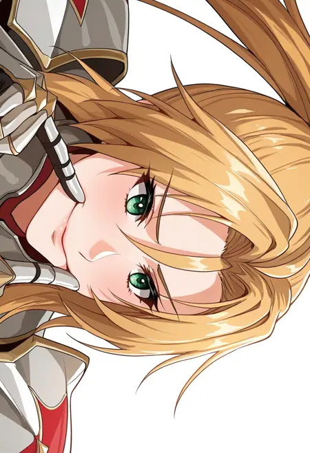 rachel_cnr, 1girl,blonde hair, long hair, ponytail, ahoge, green eyes,