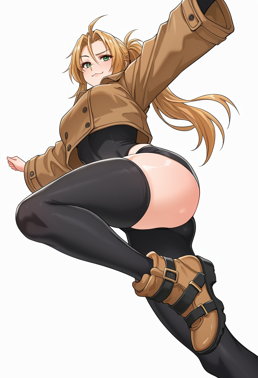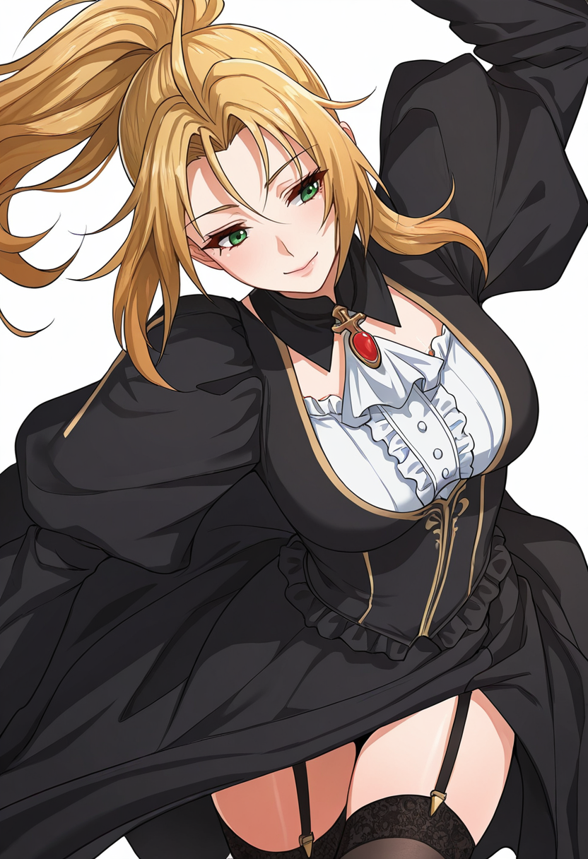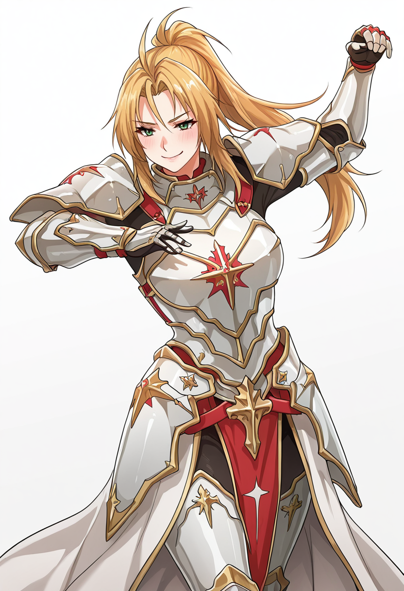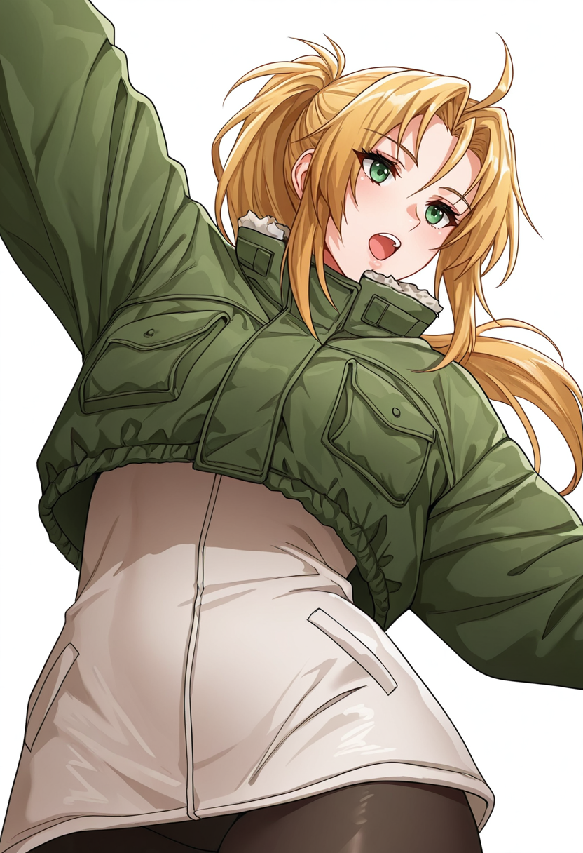 rachel_cnr, 1girl,blonde hair, long hair, ponytail, ahoge, green eyes,