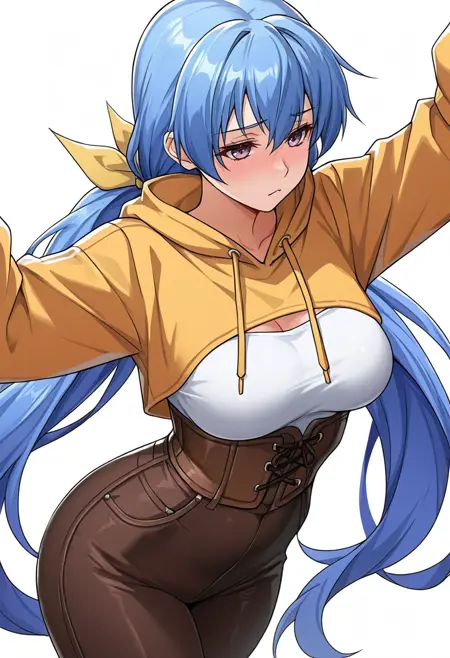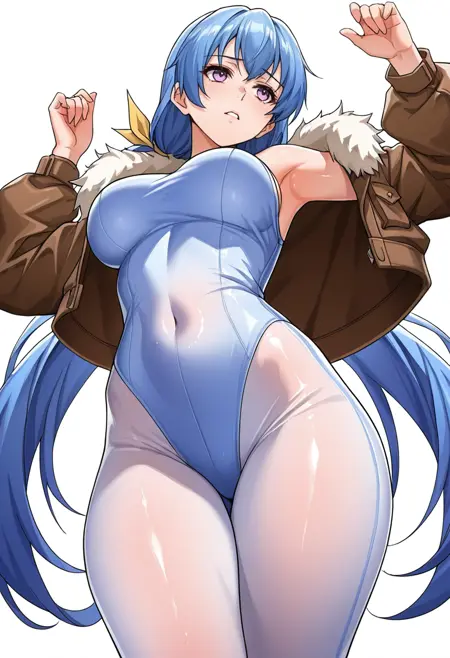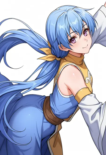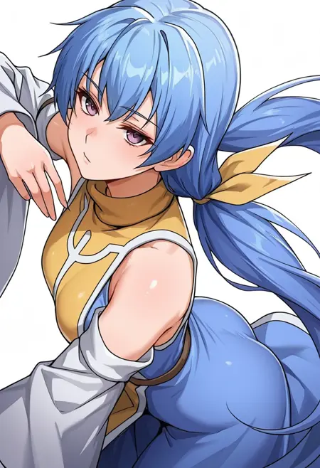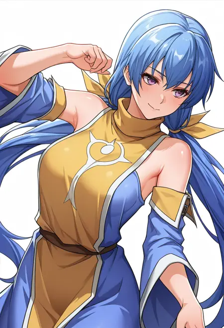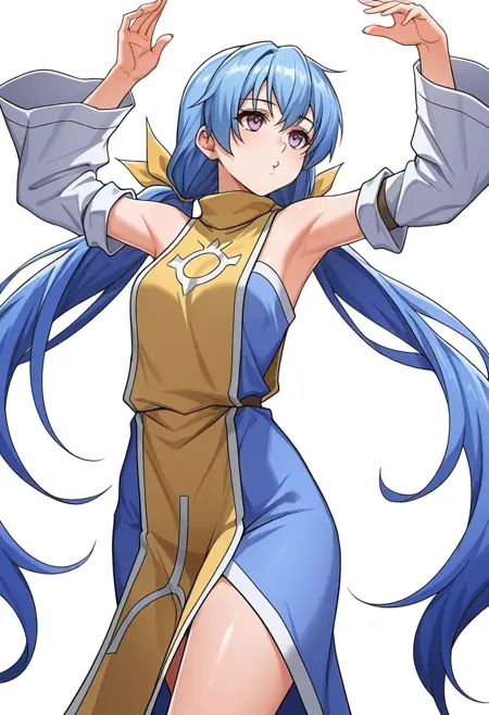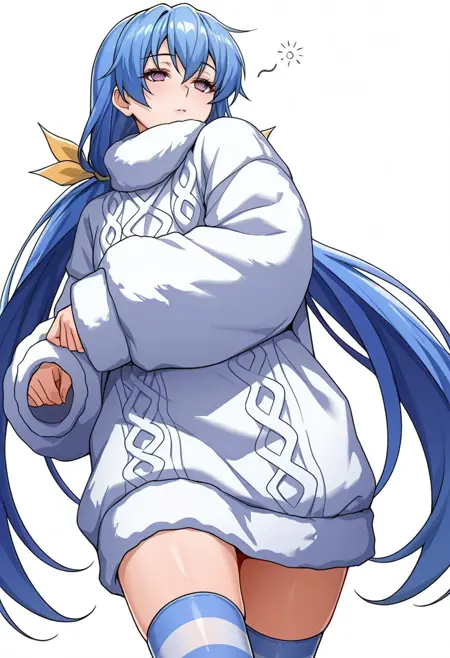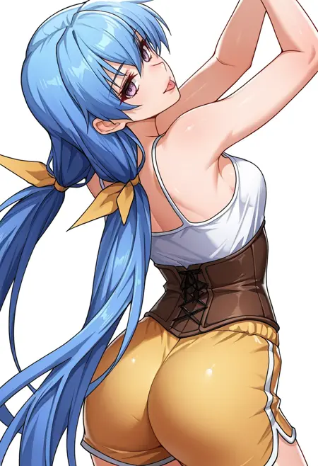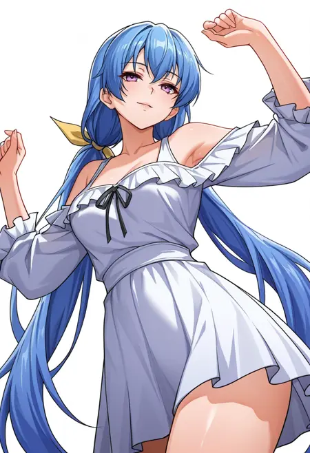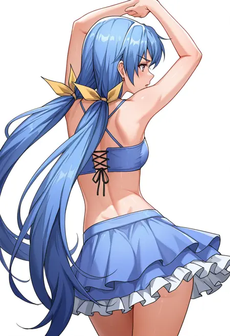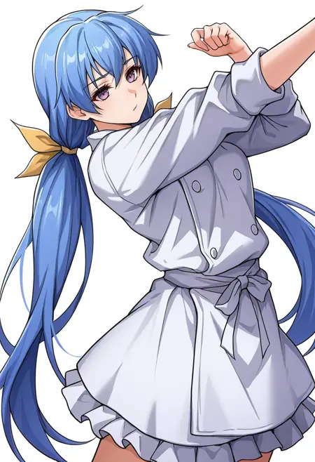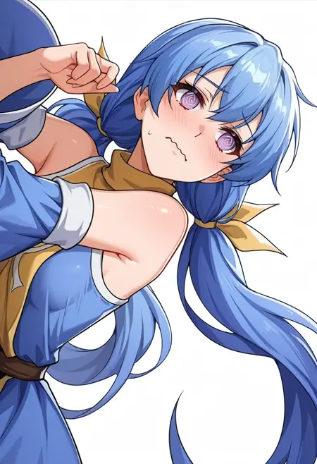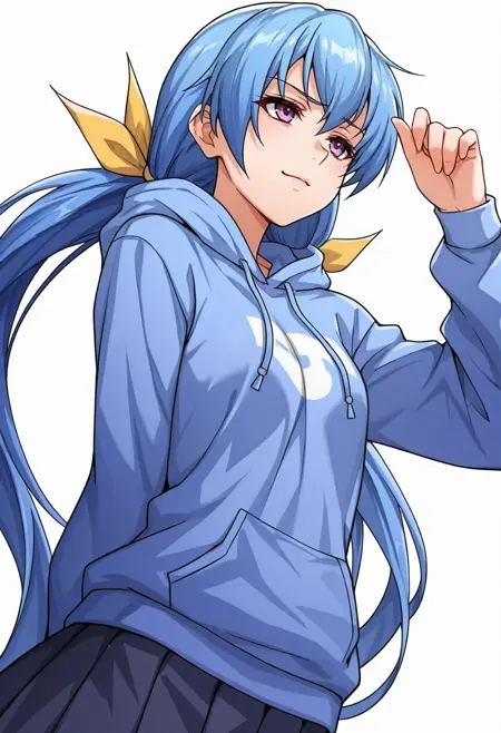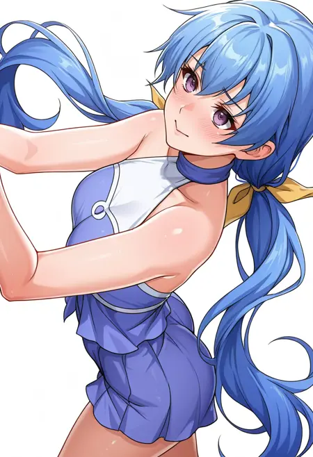 rin_cnr, 1girl,blue hair,very long hair,low twintails, hair ribbon,purple eyes,
