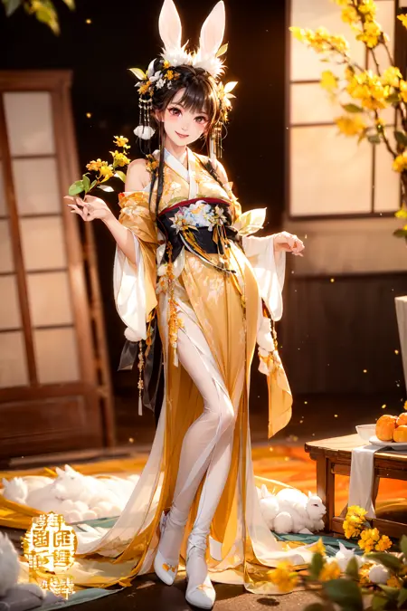 This LoRA is the jade rabbit costume of the Mid-Autumn Festival costume series. There are two versions on the shelves, one is the children's version of 3D cute children, and the other is the version of realistic girls.