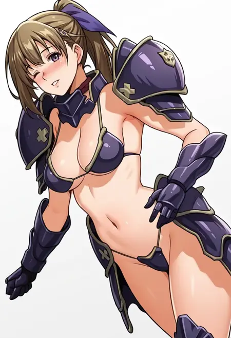 bikini armor,pauldrons, gauntlets, greaves, crotch plate, armored boots,