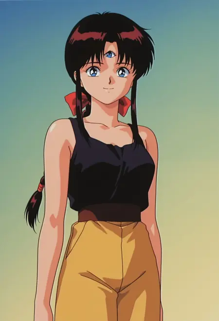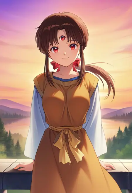 - 기본 프롬프트: parvati_iv, 1girl, third eye, long hair, red eyes, brown hair, ponytail, ribbon, looking at viewer, source_anime