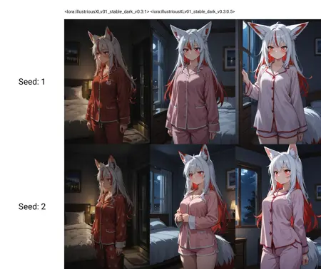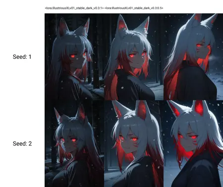 このLoRAをトレーニングしたのは、アニメモデルが非常に明るい画像に偏っているからです。たとえ「ダーク」な内容をプロンプトしても、それでも十分に暗くならず、画像の大部分は依然として非常に明るくなります。