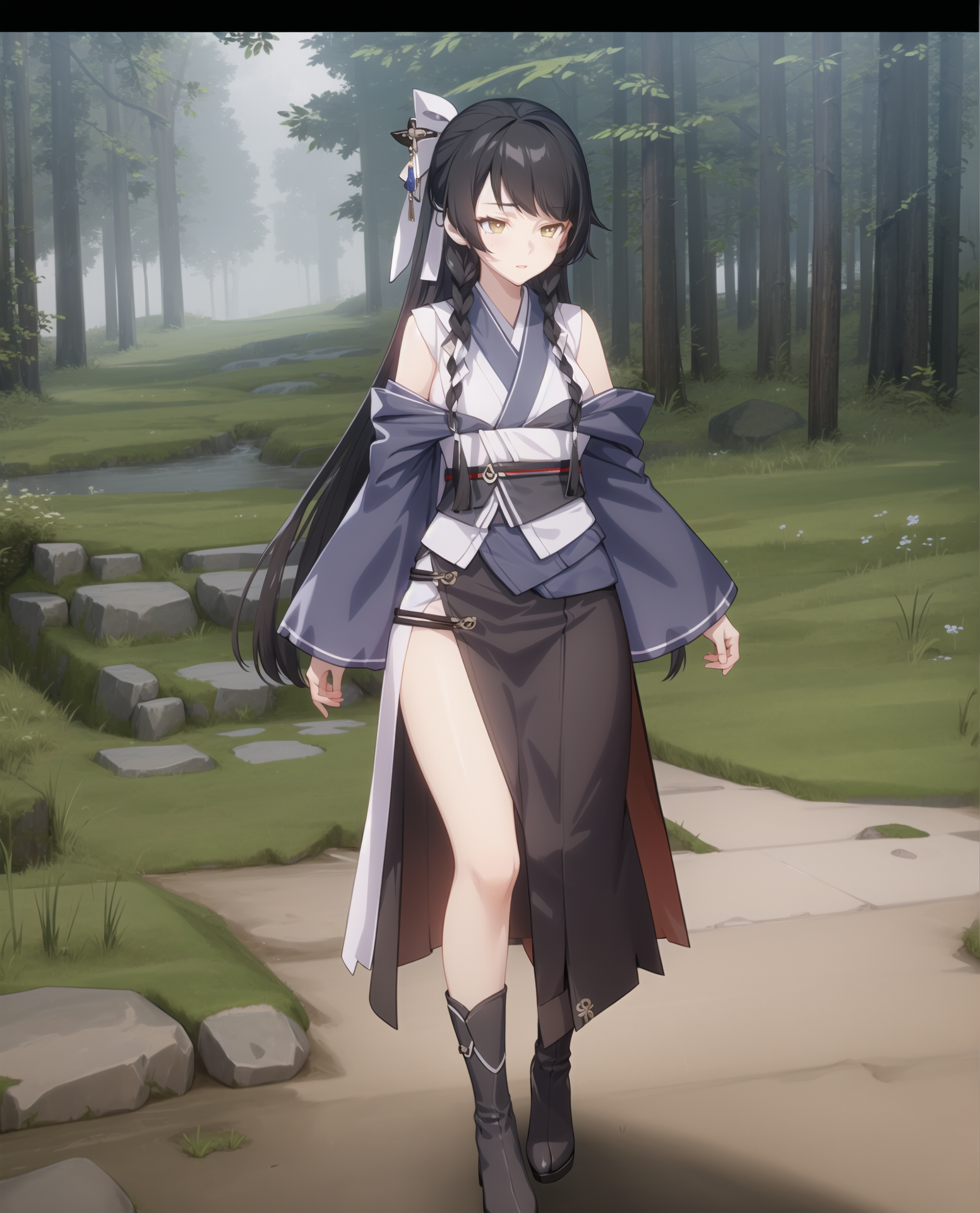 Tags: japanese clothes, kimono, hair ornament, obi, hair ribbon, knee boots, white footwear