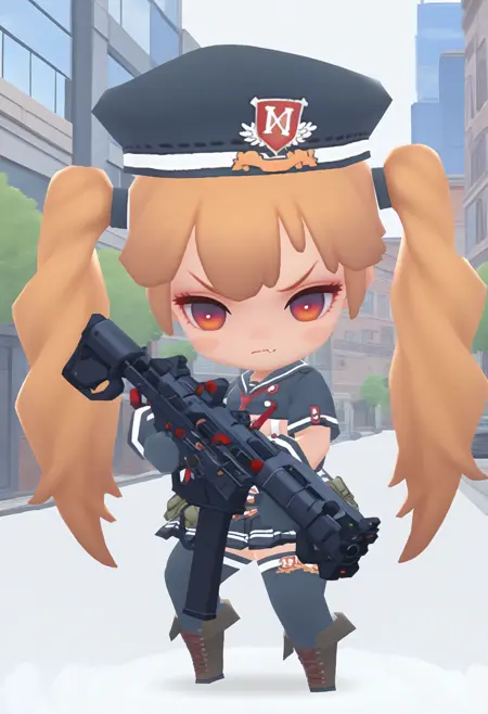 她独特的蹲姿(第二张图)出现概率很低,需要抽卡获取。