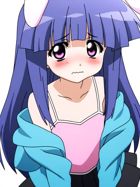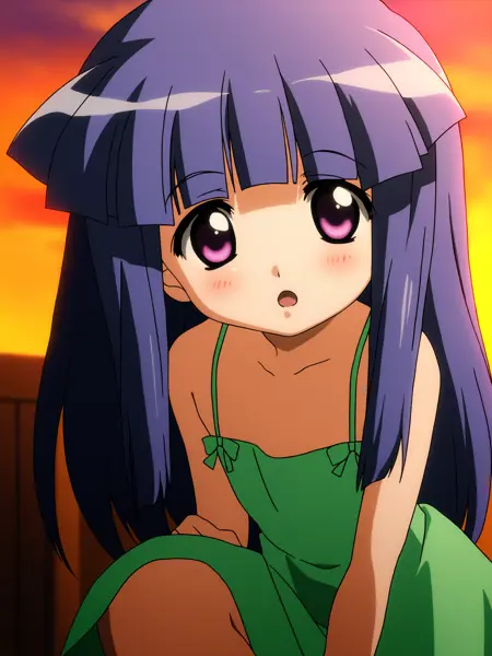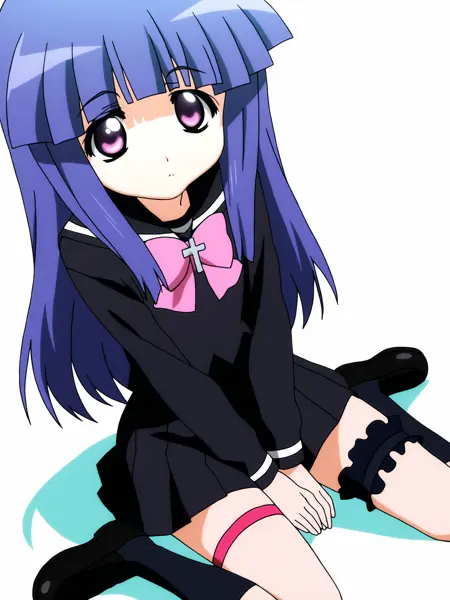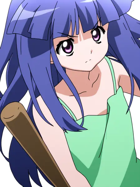 富永莉花 = 1girl,solo,furude rika,blue hair,purple eyes,long hair,blunt bangs,bangs