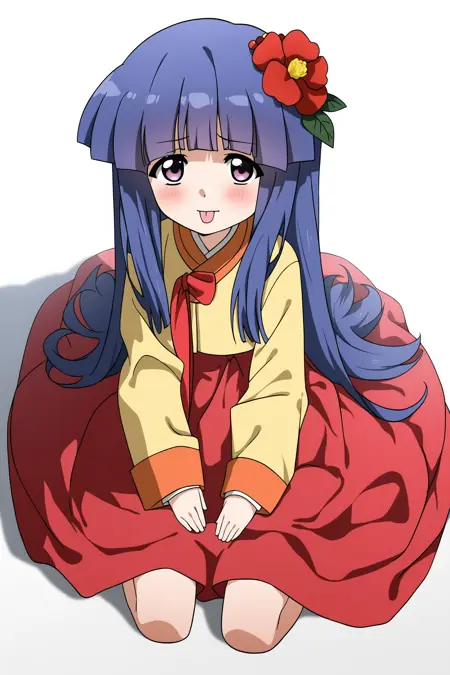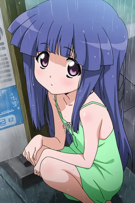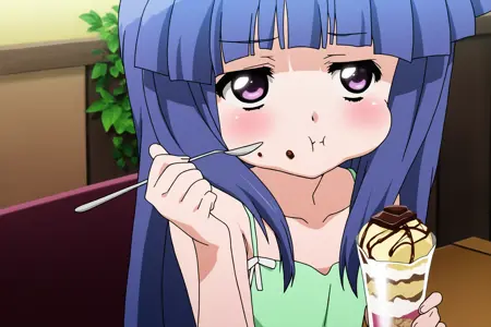 富永莉花 = 1girl,solo,furude rika,blue hair,purple eyes,long hair,blunt bangs,bangs