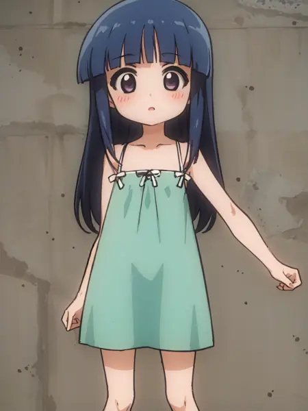 富永莉花 = 1girl,solo,furude rika,blue hair,purple eyes,long hair,blunt bangs,bangs